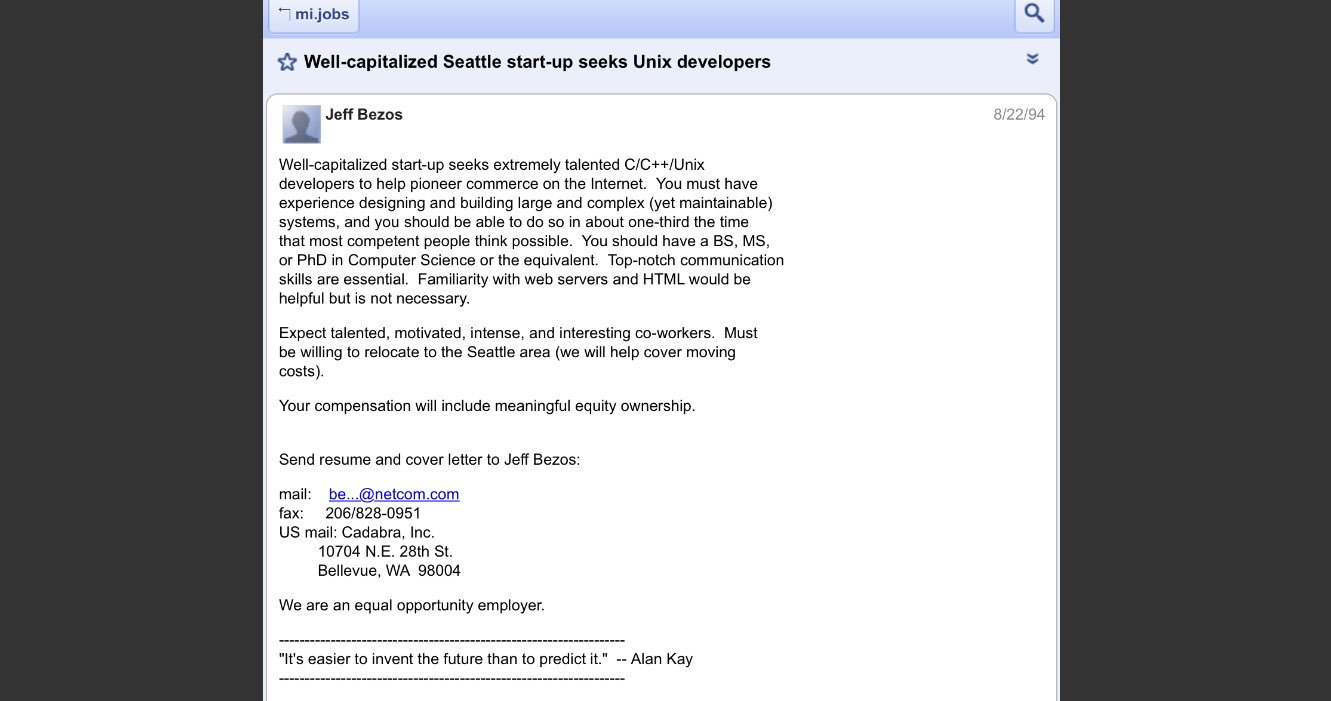 This Was The First Job Ad That Jeff Bezos Had Posted While Recruiting For Amazon 24 Years Ago - Twitter Users Were Quick To Criticize Jeff Bezos After He Tweeted A Picture Of Himself With Singer Lizzo At Super Bowl Liv With The Caption I Just Took A Dna Test, Turns Out I'm 100.